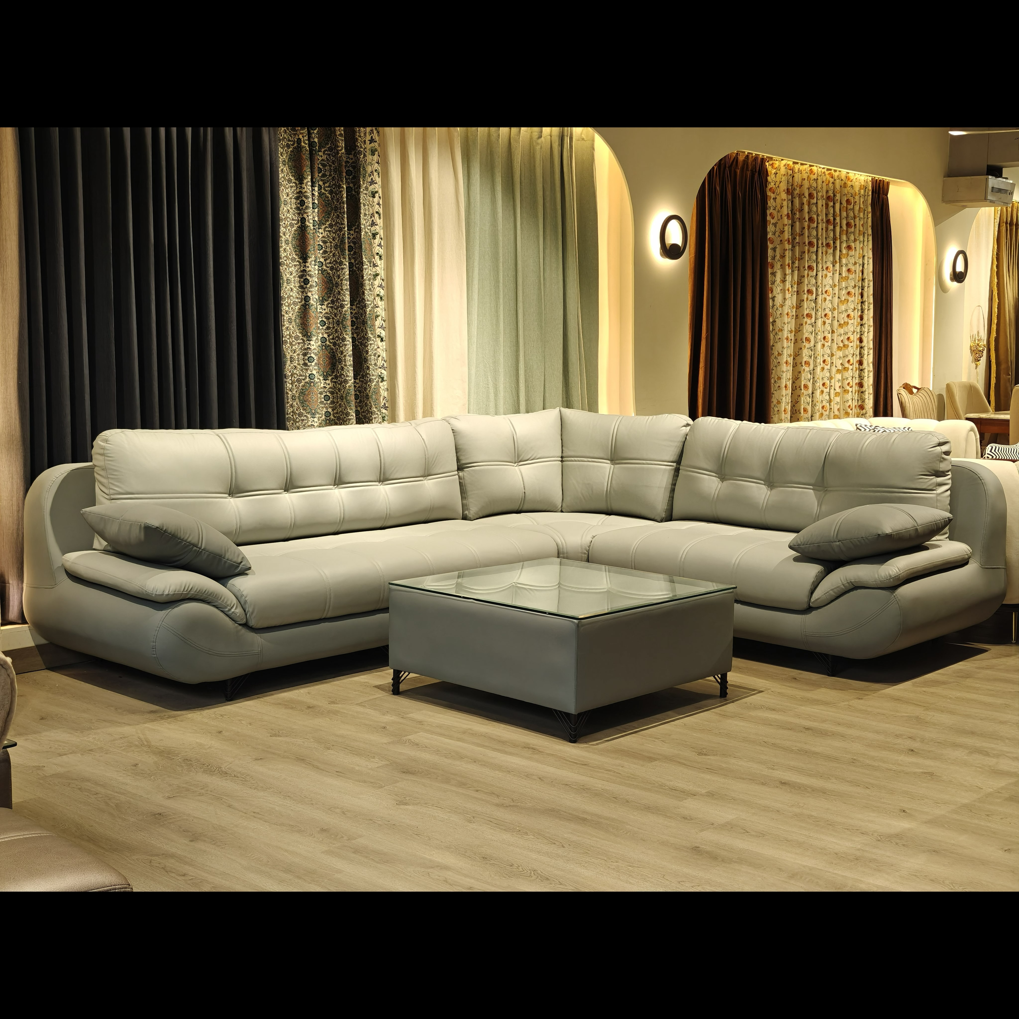 Crafted from high-quality leather, this sofa ensures durability, smooth texture, and long-term comfort. Leather furniture is highly sought after because it is easy to clean, resistant to daily wear, and ages beautifully over time. This L-shape leather sofa provides a premium seating experience that gets even more comfortable with use. Its upholstery offers a soft, supple touch while maintaining its rich appearance for years. For homes in Delhi, where frequent cleaning is needed due to dust and pollution, a leather sofa becomes a practical choice that stays elegant with minimal maintenance.